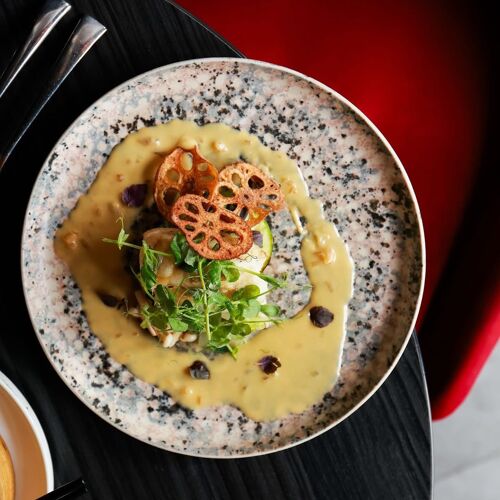 Bold graffiti art and a dark palette of black and red create an intimate and laid-back feel. In the kitchen, the cuisines of Japan, China, Thailand and Indonesia artfully rub shoulders. The chef always manages to dose just the right spices, creating dishes full of rich flavours and crisp textures. Whether you opt for sushi, dim sum, Peking duck or sea bass with panang curry, this Asian culinary adventure puts authenticity front and centre.