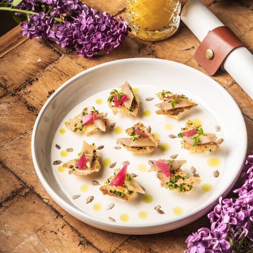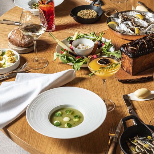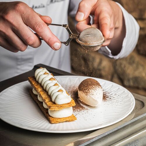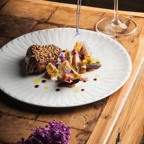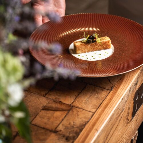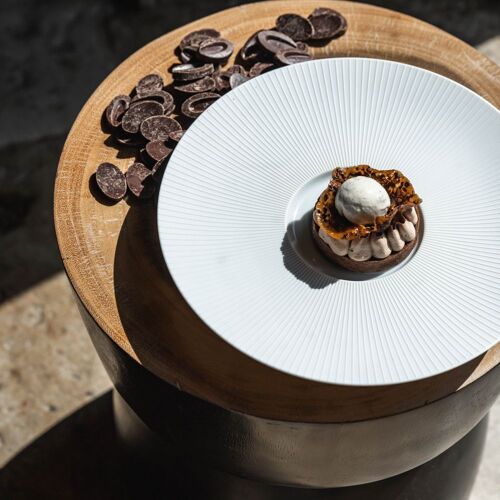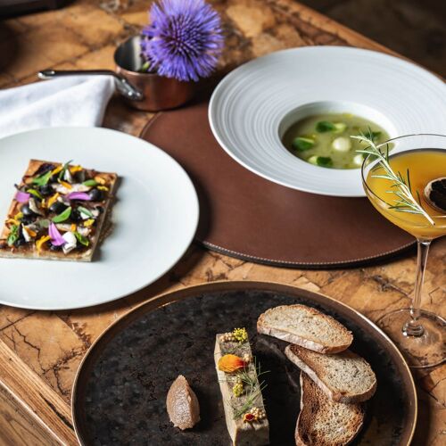 Picture a sprawling estate (almost 2,500 acres) of woodland, forest, meadows, fields, farms and ponds and now add a 13C castle equipped with every modern comfort one would expect from a top-of-the-range luxury establishment. The former stables have been converted into a dining area that adroitly blends antique and trendy details. At its helm, chef Matthieu Pasgrimaud (Saint Tropez’ La Vague d’Or and Manhattan’s Daniel Boulud) can be relied upon to make the most of the first-class produce grown on the estate, scattered with aromatic herbs and garden veggies. Kitchen garden dishes (Camus artichoke flowers and plum amandon oil) vie for pride of place with dishes to share, more classical recipes and the chef’s signatures (like sturgeon loaf and Neuvic caviar) in a culinary repertory that is as eclectic as it is high-flying. Chloé Tardivel, the chef’s partner, elegantly and seamlessly manages the welcome and service.