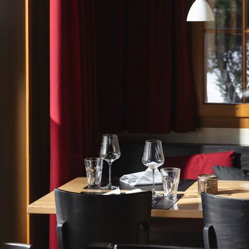 This hotel's bistro may be cheaper than its upscale restaurant, Stuba, but the food is nonetheless tasty and fresh. Whether you come for lunch or dinner, the no-frills market-inspired cooking won't break the bank. They are keen to use produce from the region, in dishes such as "Hüttler's hamburger" or house speciality "Dad's steak tartare". Another of their classics is the spicy Thai red curry, which has just the right amount of heat! In keeping with the Alpenblick style, the atmosphere is nice and relaxed, and the service charming and attentive. In summer, the covered terrace in front of the entrance is inviting. The wine list is the same as at Stuba.