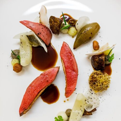 Here, diners can sit beneath a stylishly painted historical ceiling or out on the pretty terrace with adjoining garden. The kitchen draws on traditional French cuisine to propose creative dishes in the form of a four- to six-course menu. Plus the wine list is one of the best in Germany. Alternatively, try the bistro. Guests can also stay overnight in the hotel of the same name in cosy, well-appointed guestrooms.