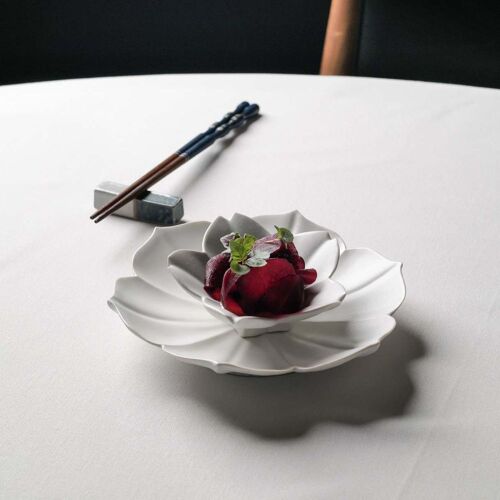 Guests enter this former warehouse through a converted freight elevator, a testament to Oriole’s unique brand of elegance, further exemplified by the striking ceiling collage above the spotless open kitchen. Chef Noah Sandoval and team execute a thoughtful tasting menu that blends French and Japanese elements. Small bites in the impressive bar are accompanied by a welcome drink, and might include a tartlet of Dungeness crab or Hokkaido uni. Then, a mouthwatering canapé of foie gras parfait with pickled strawberries is served overlooking the impressive open kitchen watching the kitchen team in full flow. The capellini with black truffle is a highlight and a great lesson in culinary self-restraint. Service is polished, detailed and discreet.