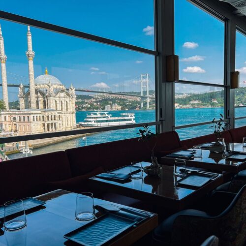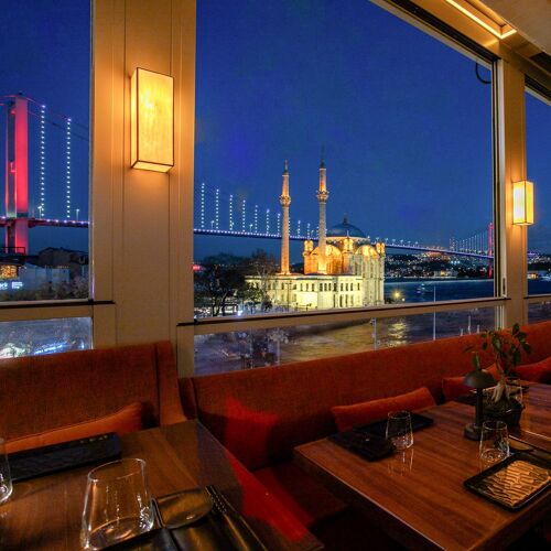 Dinner at Banyan is a real experience. As you take in the view of Ortaköy Mosque and the action on the Bosporus through the large windows, choose an aperitif from the fabulous selection available at the cocktail bar, where a DJ plays the hottest beats. The food is not to be underestimated: expect modern Asian dishes and spicy flavours with fish as the main focus. The menu includes exquisite sushi options, prawn gyoza and chicken with a spicy green curry sauce. And even if you turn up after 10.30pm, the kitchen will still be open with a shorter menu. Very cool!