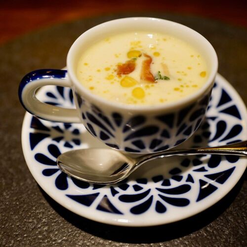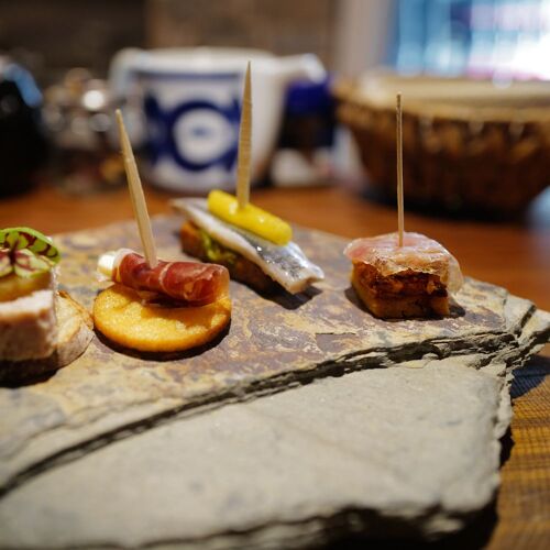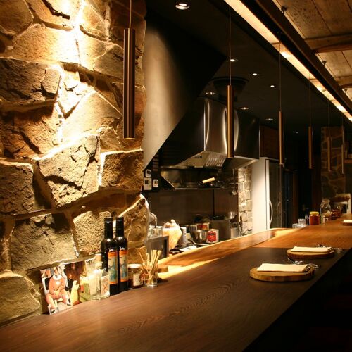 A counter restaurant serving the cuisine of northern Spain. After spending considerable time in Galicia and the Basque Country, the chef drew inspiration from the guardians of those regions’ culture and food. Both regions face the Bay of Biscay, so their cuisines, blessed with bounties of sea and land, are delightfully varied. Overlaying these traditions with Japanese foods such as kudzu, soba and green pepper flower creates expressions of unique character. A marriage of Spanish local cuisine with Japanese ingredients.