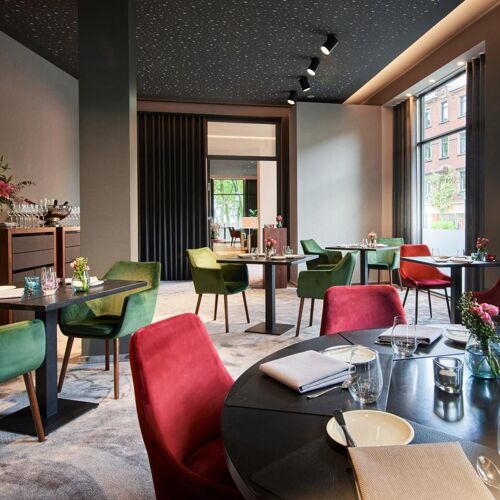 This listed Gründerzeit building (1890) in the centre of Saarbrücken is tasteful through and through. Once a school, it now houses a charming little boutique hotel and this chic restaurant, where chef Silio Del Fabro combines classic and modern cuisine. He incorporates French, Mediterranean and Japanese influences. Supremely fresh seasonal ingredients of outstanding quality, some of which are sourced from a farm in the region, go into the dishes. The craftsmanship is superb and the flavours are bold – a prime example being the perfectly roasted US entrecôte, served with a crispy potato millefeuille, crunchy grilled spring onions, Chablis cream-glazed Krause Glucke, a dollop of N25 Kaluga caviar and a wonderfully rich jus. Diners can opt for the "Menu Signature – Classics" or the "Menu Racine – Ritorno alle Origini" (note the reference to the chef's Italian roots) or a range of à la carte dishes. At lunchtime, it is worth bearing in mind the "Plat du Jour". The wine list, which focuses on a French and German selection, is excellent. The front-of-house team is knowledgeable and charming.