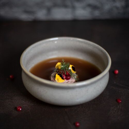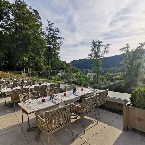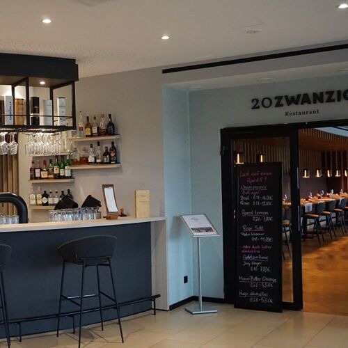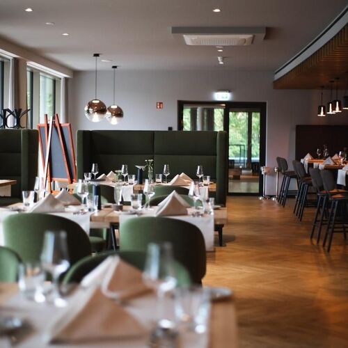 Nestled in a quiet location on the outskirts of town, Hotel Freiwerk's core building is a spruce half-timbered villa dating from 1894. Its restaurant, 20zwanzig, is housed in the modern extension, built in 2020. The chic, trendy interior has a large window front that affords a splendid view of the surrounding greenery. You can order the contemporary seasonal cuisine à la carte or opt for a surprise menu comprising a variable number of courses. Friendly and well-trained waitstaff.