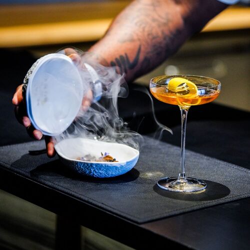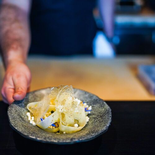 Saving room for dessert isn't necessary at Nicōsi because this daring tasting menu celebrates the final course exclusively from start to finish. Nestled inside a dark, moody space hung with velvet curtains off Pullman Market, this theatrical experience is a true surprise, as there is a strict no photo or phones policy for all guests at the L-shaped counter. The multicourse meal tends to follow four themes—acidic, umami, bitter and sweet—and the team rarely repeats dishes from one season to the next. The creations are edgy and imaginative. Think mille-feuille of Fat Tailed Tomme cheese crackers with spring onion mousse, powdered sugar and caviar with gold leaf or even beef short rib crowned with cotton candy made right there in the middle of the room. All throughout, chefs engage diners, freely explaining their process and their inspiration.
