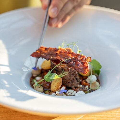 "For decades I, and in the meantime also my daughter Gabi, have stood for sustainability and vegetarian delicacies in our 500-year-old house! We use products from our own garden, such as wild herbs, apricots and quinces, and kitchen waste is composted in our own vegetable garden!"