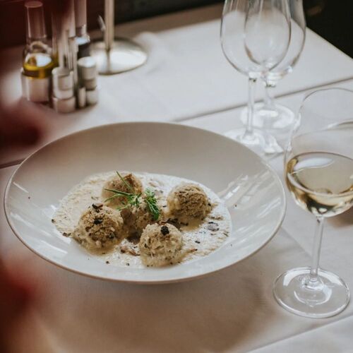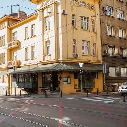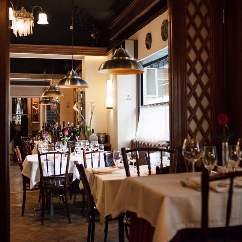 Situated to the east of the city just outside the historic centre, this restaurant boasts an intimate ambience that comes as a surprise when compared to its exterior. The dining room has the feel of a French bistro, with small tables, background music (often French), and a few cubby-holes that are perfect for couples. The cuisine has solid roots in Balkan tradition, featuring traditional soups and stews, such as lamb in white wine served with mashed potato and seasonal vegetables, various fresh pastas and vegetarian options such as vegan curry with chickpeas, sweet potatoes and green beans.