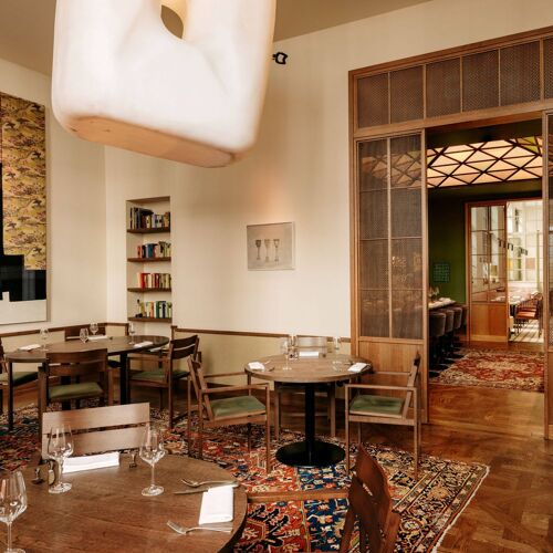 The elegant hotel Château Royal stands near the Brandenburg Gate, behind a dapper historical façade. Combining classical elements, design highlights and contemporary art in its impressively high-ceilinged rooms, it also houses a stylish restaurant with a lovely bar. The atmosphere is pleasingly intimate, and the cuisine bears the hallmarks of both Mediterranean and classic influences – the freshly made pasta is particularly popular. At lunchtime, the reasonably priced lunch set menu is a winner.