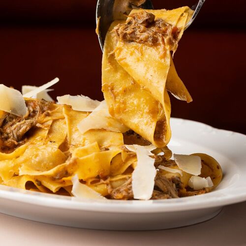 Chef Evan Funke, who also runs Felix and Mother Wolf, is at it again with this eponymous restaurant. Set in a three-story 1930s art deco building, it's a stunning tribute to Italian cooking, with handmade pasta taking center stage (there's even a glassed-in room to watch them at work). Tall ceilings, red leather booths, and stone tables with brown leather/suede chairs set a stunning tone for a menu that pulls from their sister restaurants while remaining true to itself. Start with their pillowy focaccia, then savor a plate of tender South Pacific blue prawns in a garlicky salsa verde. Handmade agnolotti is delightful with a creamy filling of taleggio fonduta, finished with a meaty, buttery sugo di arrosto and parmigiano reggiano. Finally, torta di cioccolato is a wonderful finish.