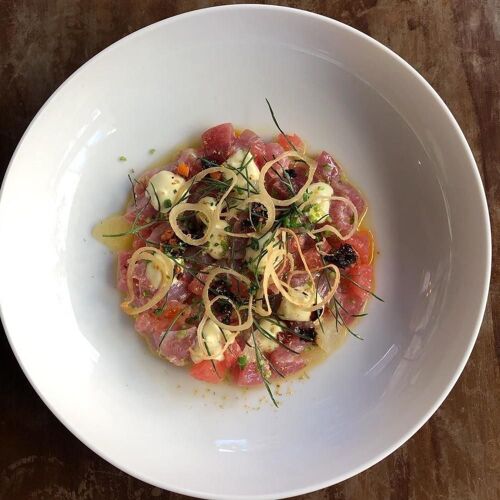 The California-Italian menu has seasonal offerings, such as a burrata and stone fruit salad, as well as a variety of brick oven pizzas with playful twists, like a pepperoni pizza with Calabrian chili and a honey drizzle. Fresh pastas, including the torchio alla norma with eggplant, chili flakes and ricotta salata with basil, are always a good bet.