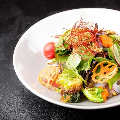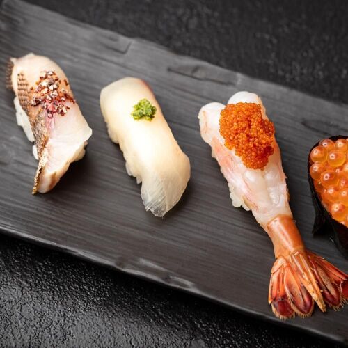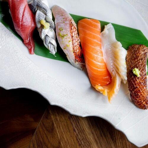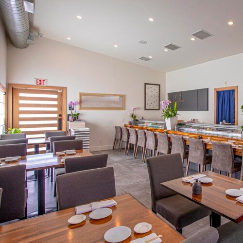 Sushi options have certainly come a long way over the last few decades, as evidenced by this dynamic spot, boasting a sweet price point. Minimally accoutered with a dark wood counter, floral arrangements, and gray floor tiles, everything here feels refined and contemporary.