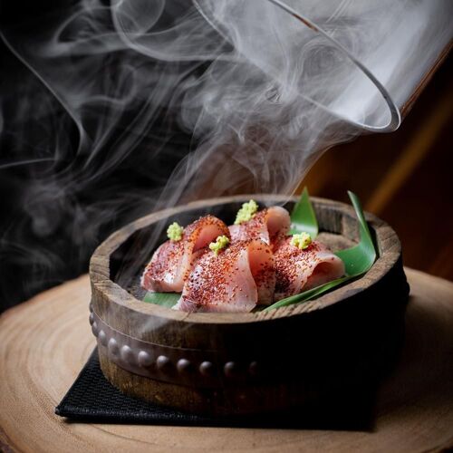 The food, brought to you by veteran chef, Mark Okuda, follows suit. In addition to the omakase, the menu features such specials as a "JYO" chirashi bowl, dry-aged grilled fish collar, and Hokkaido snowcrabs. Served in a tall martini glass, halibut arrives with Japanese cucumber, micro shiso, and yuzu-spiked vinegar; tailed by such pristine nigiri as albacore, skipjack, and bonito. Close out with chewy, citrus-dabbed octopus, marinated ora king salmon, and a tuna-packed handroll.