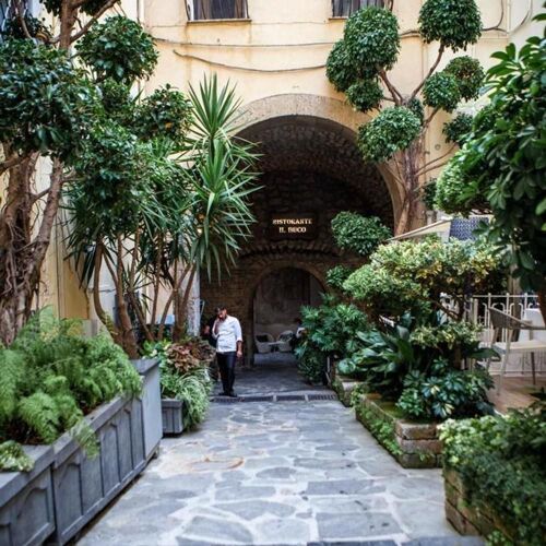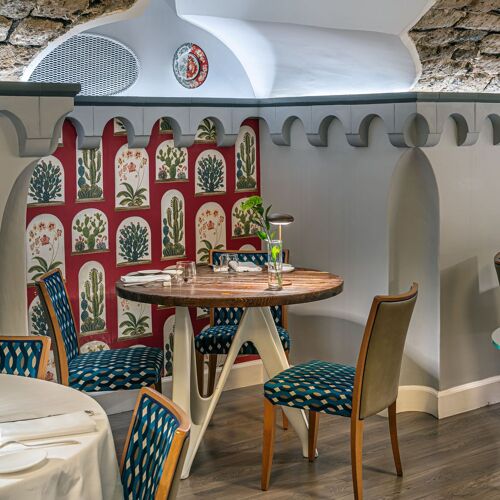 In the heart of Sorrento, diners can choose between the historic dining room, set in a 16th‑century cellar once used as a monastic storeroom, or a more contemporary space with a striking glass‑fronted wine cellar, boasting an impressive selection of over 1,600 labels. Wherever you sit, expect cuisine rooted mainly in Campania, enlivened with a few original reinterpretations. Particularly noteworthy are the pasta dishes by chef Giuseppe Aversa, often among the highlights of the menu.