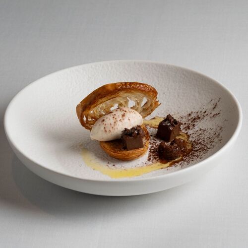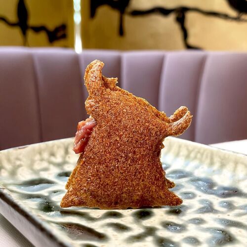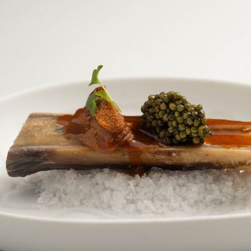 The Sandoval brothers (with Mario in the kitchen, Diego at the head of the dining room and Rafael as sommelier) are, without a doubt, three great aces of Spanish hospitality. The magnificent restaurant, which covers an area of 1,100 m², elevates the experience by being laid out in stages that allow you to multiply the sensations, with stops at its colourful English-style bar, in the small room dedicated to The Macallan whiskies, in the spectacular wine cellar (it even has a 'sacristy' where sherry is poured with a venencia) and, before moving on to the dining room, a final aperitif in the kitchen. Always striving for deeper knowledge of seasonal raw ingredients, Mario Sandoval, through his "Madrid" menu (there is a vegan-vegetarian option) offers us a creative review of the cuisine of the capital but also, as they themselves say, of all that it can become. Discover the research work carried out in his Agrolab (El Jaral de la Mira)!
