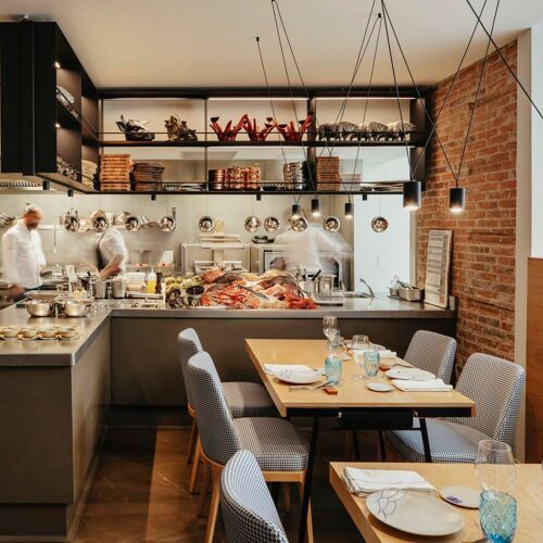 The essence of the sea in the heart of the Spanish capital! Here, top-quality products take centre stage, with a focus on superbly prepared fish and seafood that can’t be bettered – an impression backed up by the exclusive array of quality ingredients visible in the display cabinet. The main object here is to eat well, of course, but we recommended not going alone as many of the fish served are large in size and these may not be available just for one person.