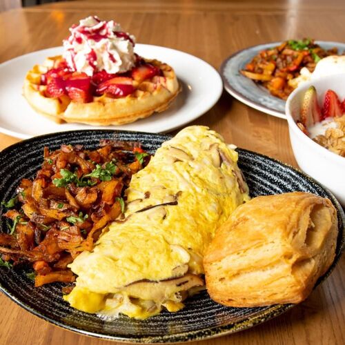 Lucky are the eaters who make their way to this unique seafood smokehouse. Inside the warehouse-like space, a daily market and state-of-the-art smoker reside at street level. Above this, find a tavern-like restaurant with a large, open-air rooftop. The fish is fresh, the staff is especially friendly, and the vibe is irresistible with occasional live music. Opt for the smokehouse appetizer which comes with your choice of smoked fish (perhaps Pacific Northwest-style honey hot smoked salmon, North Carolina rainbow trout, or Great Lake whitefish salad) paired with a bagel and served with chive cream cheese, tomato, red onion, cucumbers, capers and horseradish sauce.