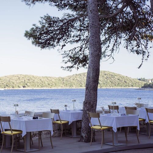 With the freshest catch, seasonal vegetables and local extra virgin olive oil, Marko Gajski builds a refined cuisine that cleverly combines Dalmatian ingredients, Eastern suggestions, French-style sauces and well-calibrated fermentations. The creative and flavourful dishes are the result of solid technique and recount a personal and consistent gastronomic journey. The service, which is always professional and attentive, takes place in the elegant contemporary room on the second floor, or – during the summer season – a few metres from the sea, with a romantic view of the water and surrounding islands. The restaurant's iconic dishes include shrimp gyoza with mousseline sauce and daikon – a refined and appealing dish that is always on the tasting menu. A vegetarian menu is also available. The sommelier will guide you through excellent pairings, enhancing dishes with a selection of regional and international wines.