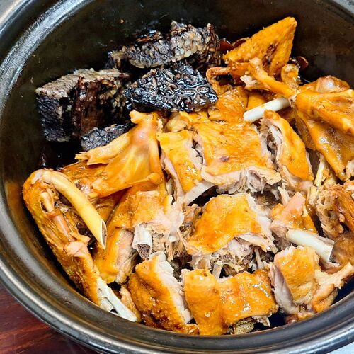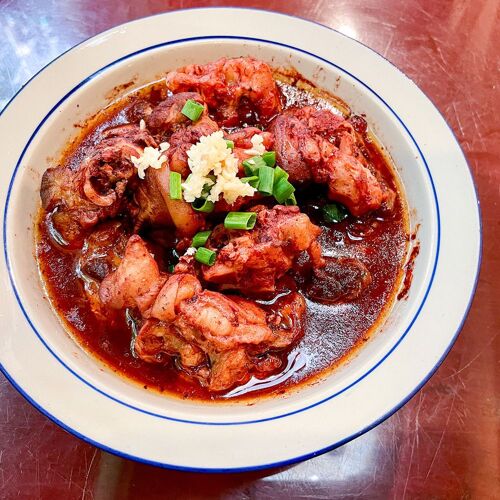 Only two set menus are offered, with 11 or 12 ovo-lacto vegetarian courses, which can be made vegan upon request. They change according to the solar terms in Chinese calendar and the more expensive menu includes gourmet ingredients like bird’s nest. As opposed to typically light-tasting vegetarian food, the dishes here pack oomph and intense heat. Richly flavoured, shredded wild rice stem with pea kernels is seasoned with chilli oil and mushroom sauce.