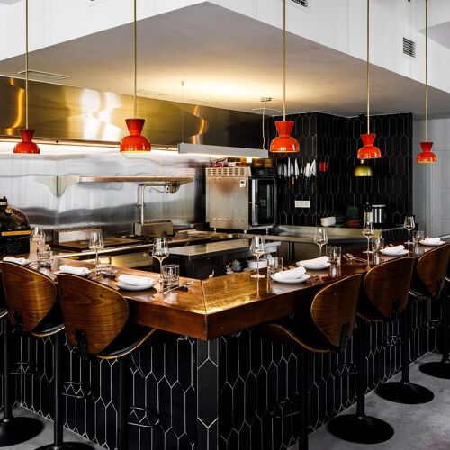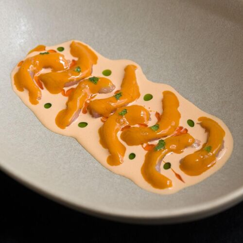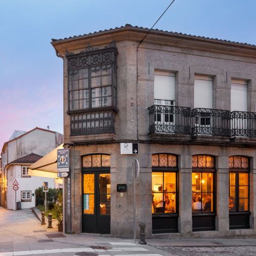 This welcoming restaurant with a contemporary feel and occupying what was once a shop stands out for its decidedly informal ambience, along with an open kitchen surrounded by a dining counter. The menu, with its heavy focus on sharing, features fusion dishes such as charcoal-grilled chicken with Chinese cabbage and a “Genoveva” dressing; millet and bull’s beef “tosta”; and mackerel with grapes and “gazpachuelo”), all of which offer a combination of Peruvian and Asian flavours, but always centred around seasonal Galician ingredients. Several recipes pay tribute to the chef’s grandmother and aunt, as it was these two family members who helped Andrés Medina develop his passion for cooking.