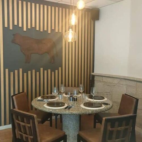 On the outskirts of Trasmonte, along a road leading to Negreira and the delightful Ponte Maceira (which has been officially designated as one of the most beautiful villages in Spain), this restaurant delights guests thanks to its honest simplicity both in terms of its decor (the walls are adorned with large photos of Galician landscapes) and cuisine. Although there’s a good choice of starters and several fish options, the main speciality is grilled meat, hence the cabinets full of different cuts (Galician sirloin, Angus ribs from Ireland, aged T-bone etc).