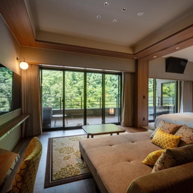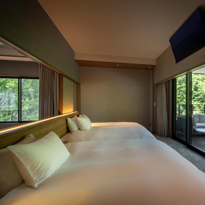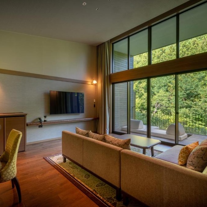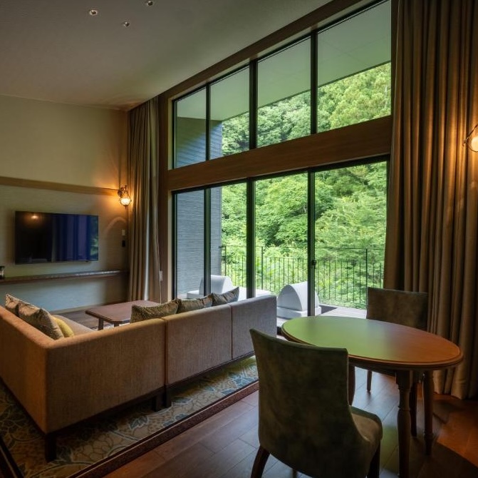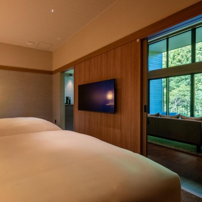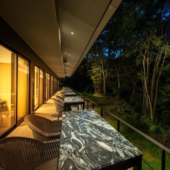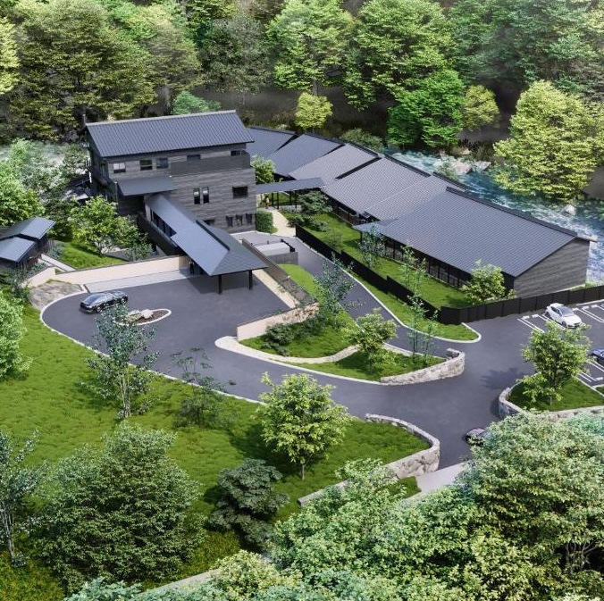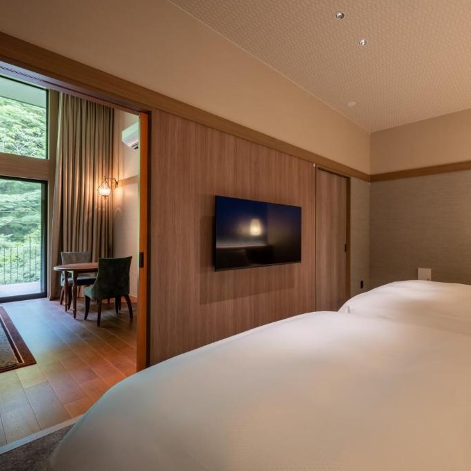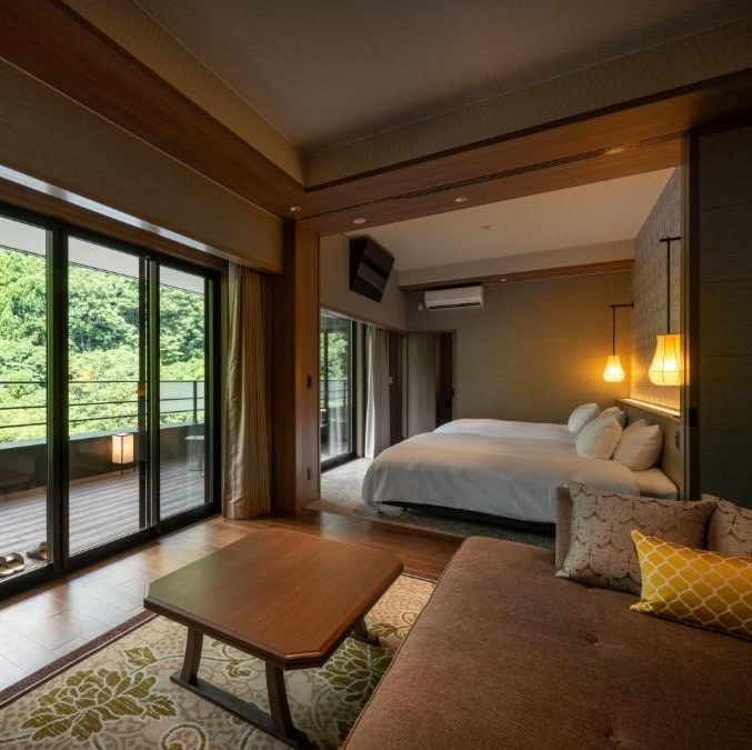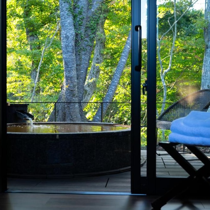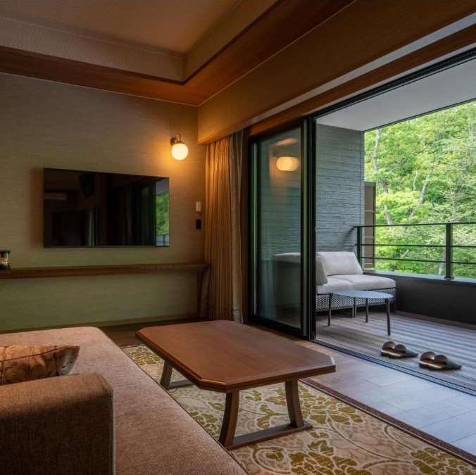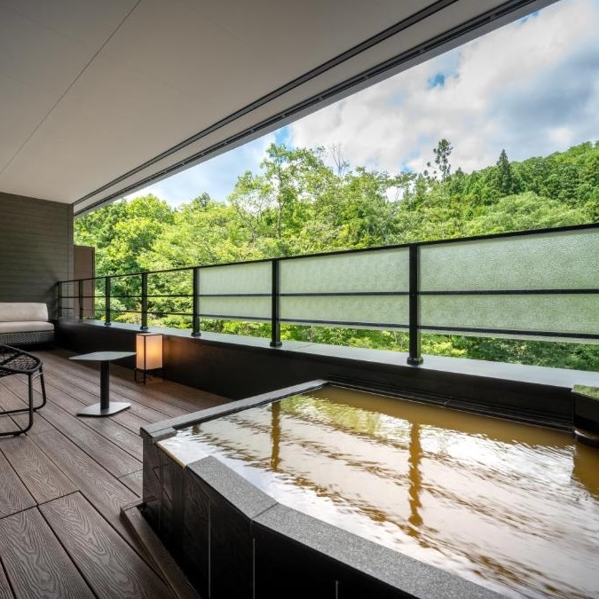At Kamasaki Onsen in the forests of Shiroishi, the Ichijo family has overseen these springs for more than five centuries. The newly built Yukawa inn carries that lineage forward, with a design inspired by an Imperial Villa and an entrance marked by the preserved door of the old Ichijo branch. Eleven rooms all feature terraces and open-air baths facing the river, where the sound of water is ever-present. Meals are served privately, often on the terrace, emphasizing seasonal ingredients from the region. Here, history, hospitality, and landscape are inseparable.