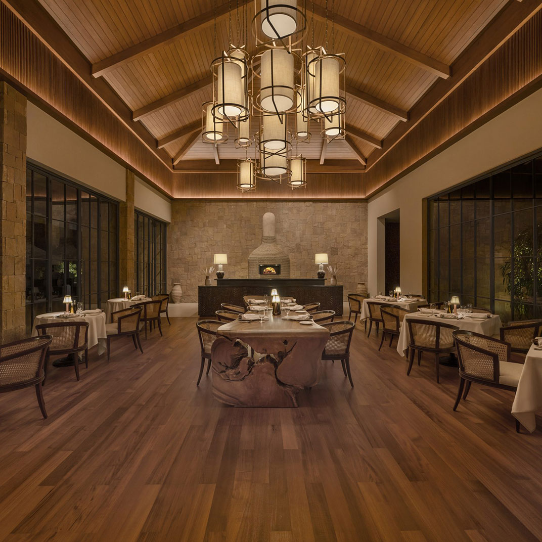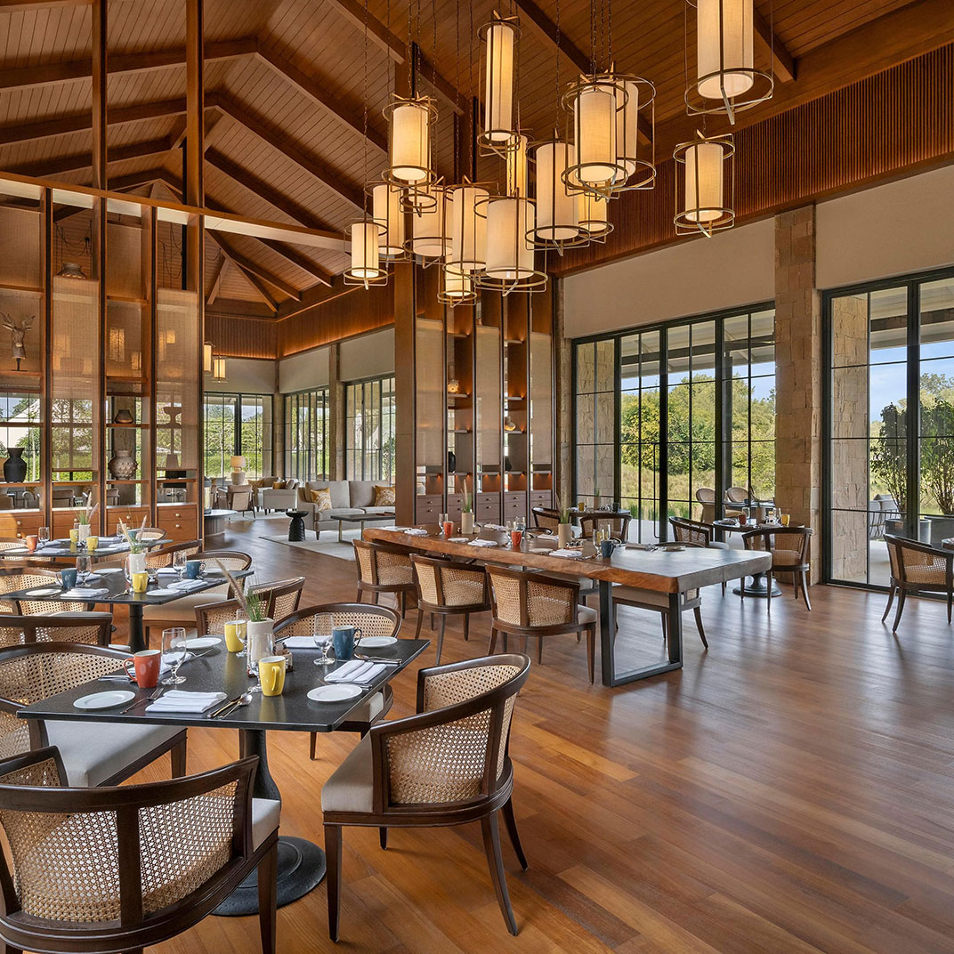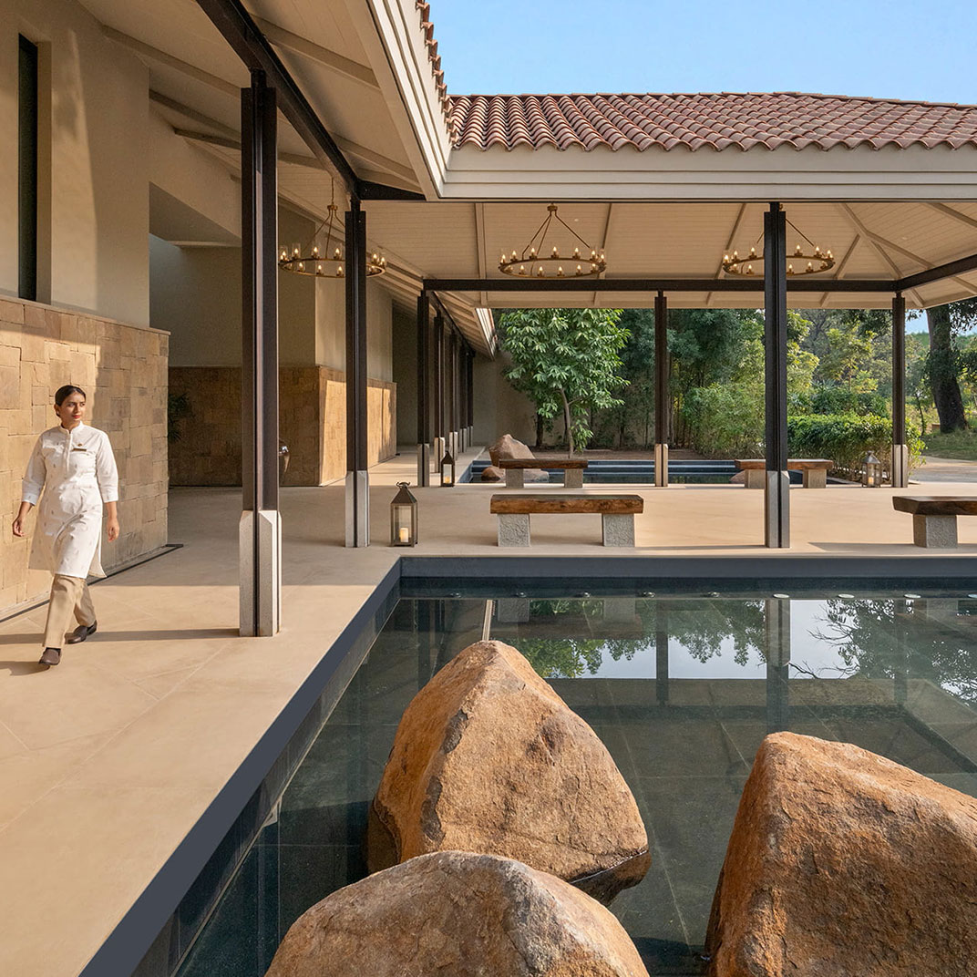 The newest addition to the “Vilas” properties, The Oberoi Vindhyavilas sits just beyond the gates of Bandhavgarh National Park, a landscape known for its remarkable tiger population. Spread across 21 acres, the resort is composed of tented suites and pool villas set in private gardens with decks overlooking fields and forest. Inside, canopied ceilings, Gond artworks, and hand-painted studies of local wildlife anchor the spaces to their setting. With a spa, tranquil lake views, and safaris at dawn, it offers immersion in the wilderness with the hallmarks of Oberoi hospitality.