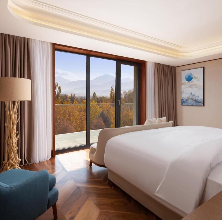 Swissôtel Wellness Resort Alatau Almaty sits in the forested outskirts of the city, where the Alatau mountains begin their climb. The property centers on a medical and fitness facility that includes the family-friendly Purovel Spa, an indoor pool, and treatment rooms designed for preventive health instead of just pampering. Basketball courts, tennis, and a gym handle the active guests. The Classic and Deluxe rooms come with panoramic windows and balconies facing the mountains. It is a wellness resort in the truest sense, built for people who actually intend to use the facilities.