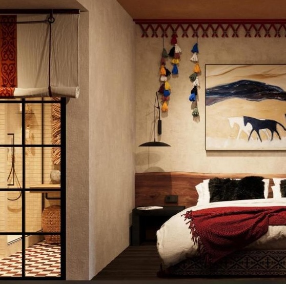 YURTA Boutique Hotel in Almaty takes the nomadic tradition seriously, 20 rooms carved from wood, textiles, and natural materials, each one different from the next. Local artisans built the furniture, while Kazakh artists Azat Tabiev and Anel Oshan contributed paintings and murals that anchor the ethnic aesthetic. The categories run from standard to suite, all individually designed. A 24-hour concierge handles everything from city tours to unusual requests, and the hotel prepares its own herbal drinks. The yurt influence runs deeper than you'd expect.