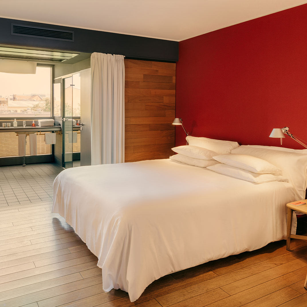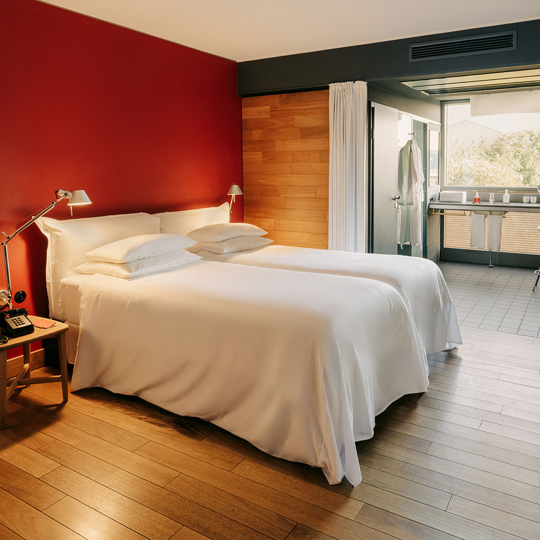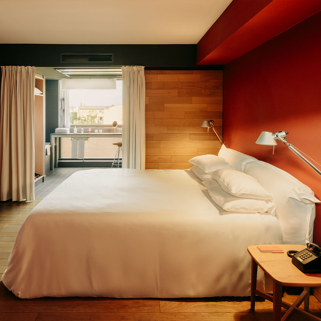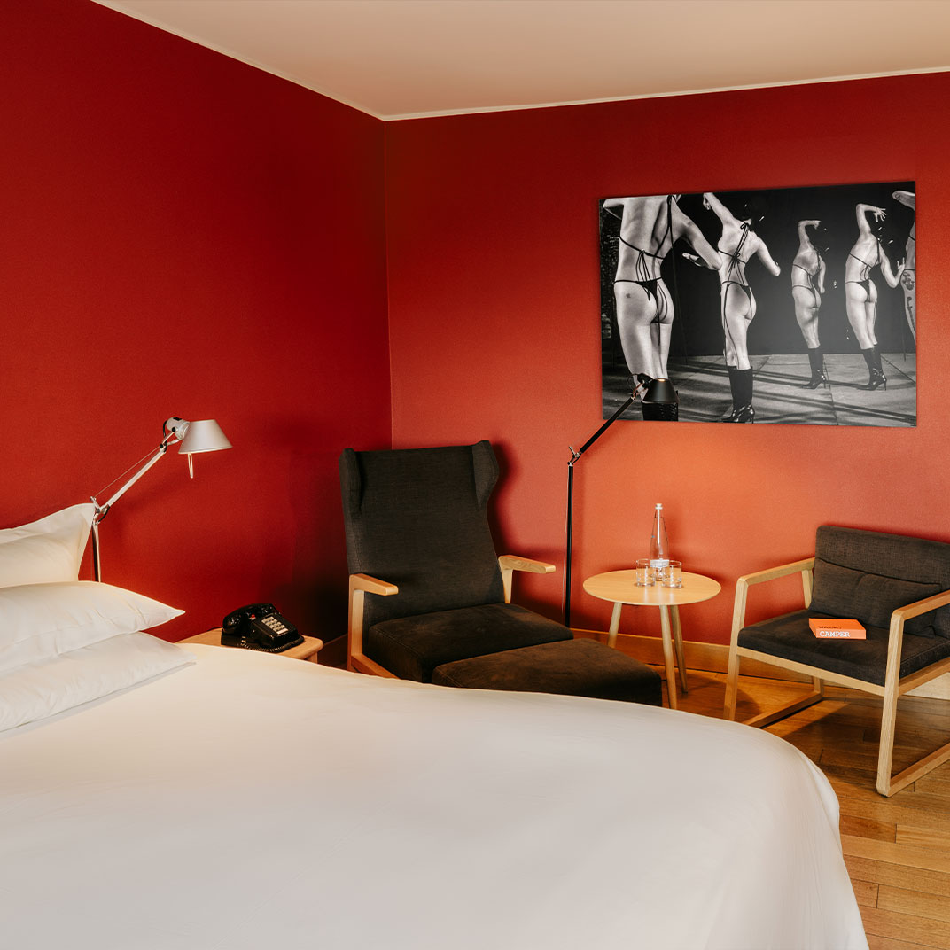 Os quartos e suítes são elegantes e concebidos de uma maneira incrivelmente original. O vermelho tijolo do Camper está em evidência em toda parte e o design moderno-utilitarista é humilde ao invés de bombástico. Os hóspedes acostumados a extremo luxo devem procurar em outro lugar, mas a maioria de nós achará o hotel mais do que confortável - aqui o que conta é o visual inspirador e o design inteligente, em vez de hectares de mármore e camas de crina feitas sob encomenda.