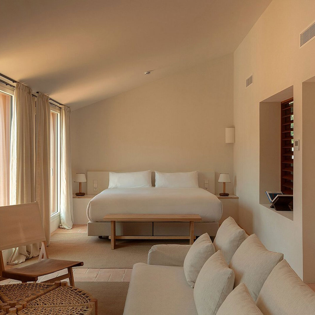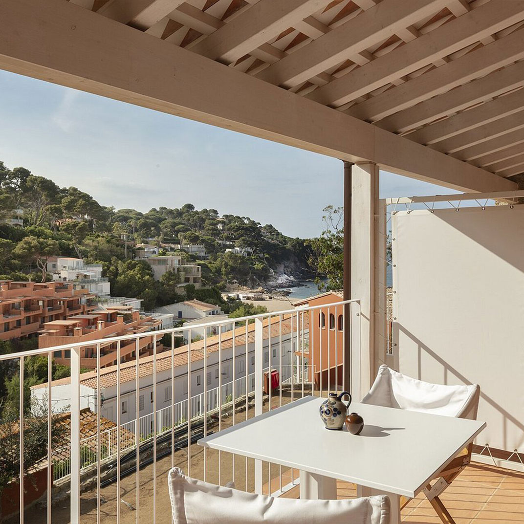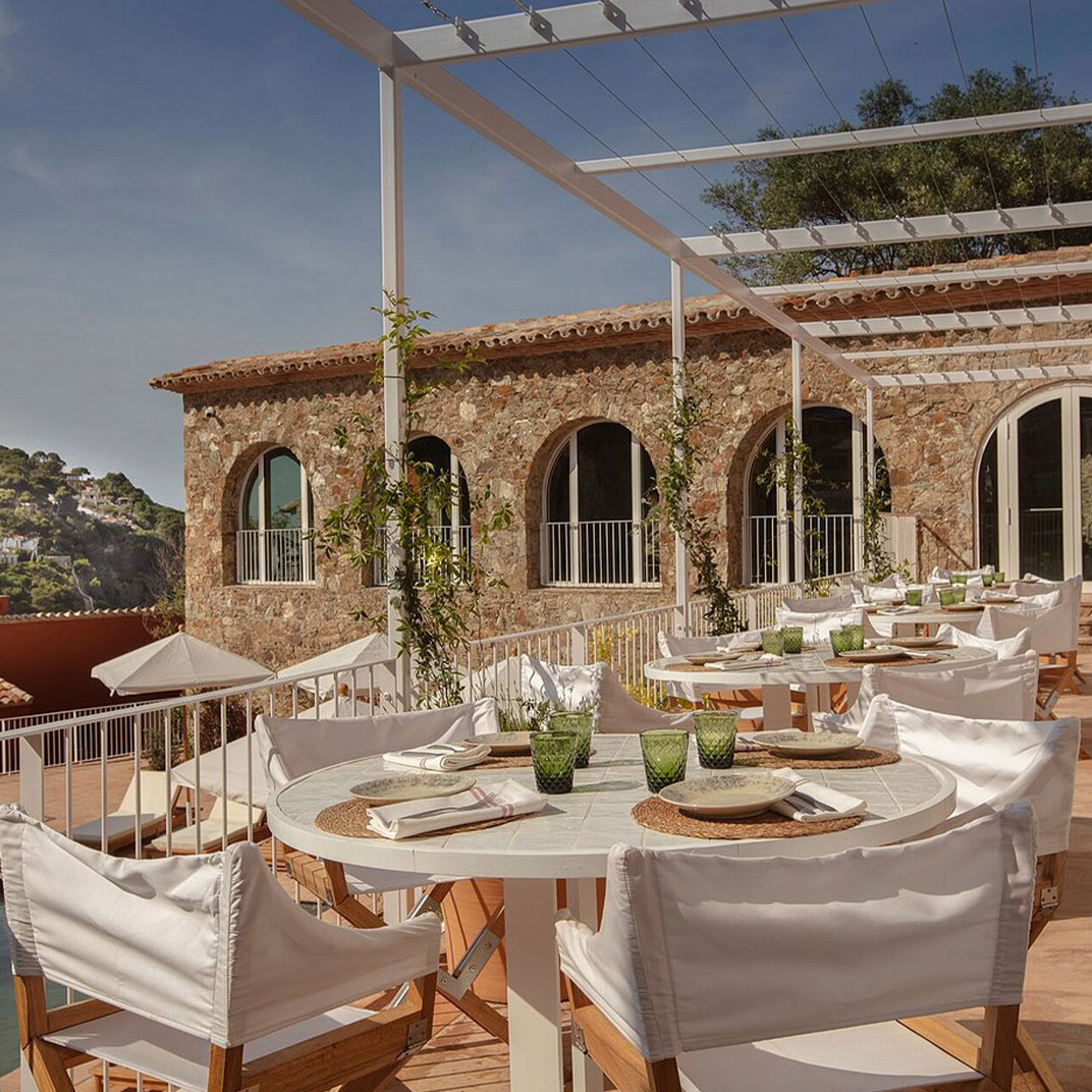 Just above Sa Riera beach in Begur, Finca Victoria is a restored Catalan villa turned relaxed seaside escape. Its rooms and suites feature natural textures: terracotta floors, lime-washed walls, and hand-thrown ceramics, with options like private terraces, outdoor showers, or plunge pools. Guests can unwind in the saltwater pool, book a hydrotherapy session at the spa, or settle in with a book in the shaded lounge. Meals draw from seasonal Catalan traditions, served across two sunlit dining spaces. It is the kind of place where everything is designed to feel easy, inviting, and memorable.