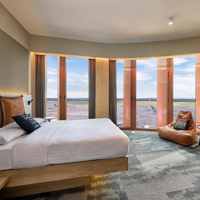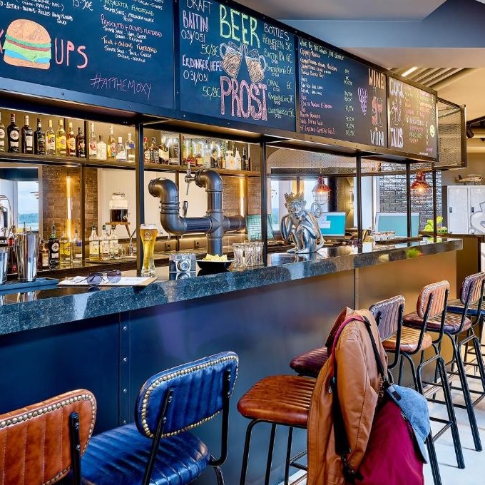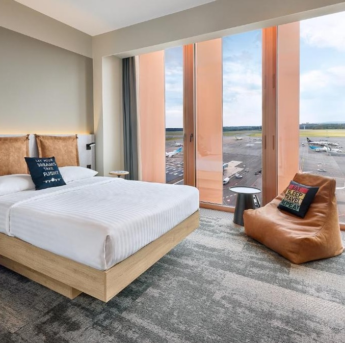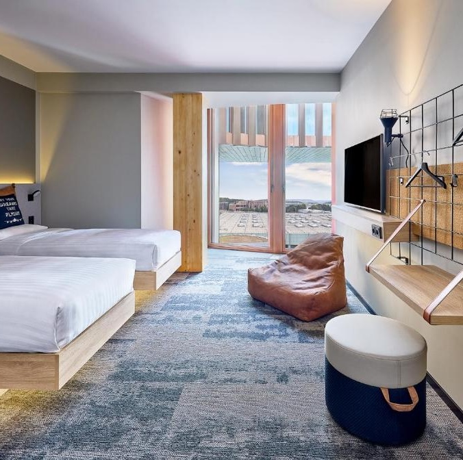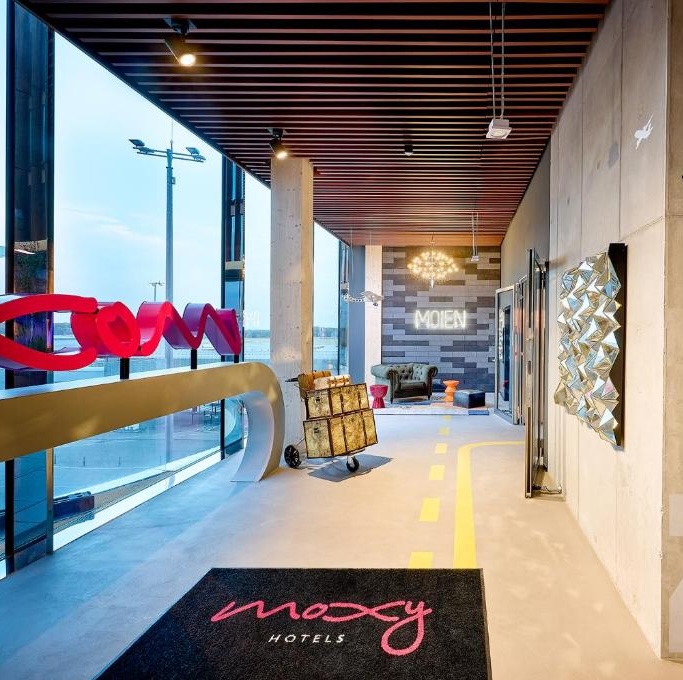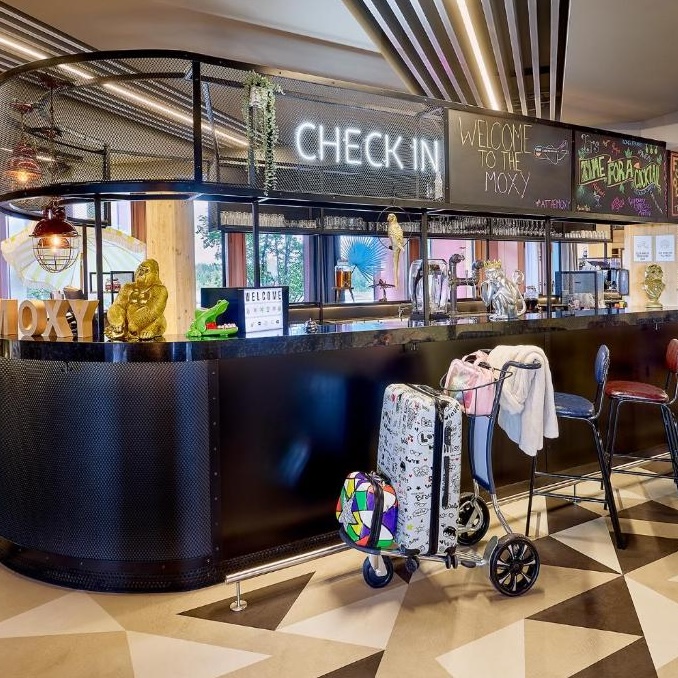 Inside the Skypark Business Center, one of Europe's largest timber buildings, Moxy Luxembourg Airport does the brand's signature lobby-as-everything approach: check-in at the bar, breakfast in the same space, coworking by afternoon. The compact rooms prioritize fast WiFi and walk-in showers over extra space. The terrace overlooks the airstrip with a bowling lane that actually gets used. Luxembourg's free public transport connects the hotel to the city center via bus or tram. Close to the airport but far from typical airport hotel mediocrity, aimed squarely at travelers who'd rather skip the rental car.