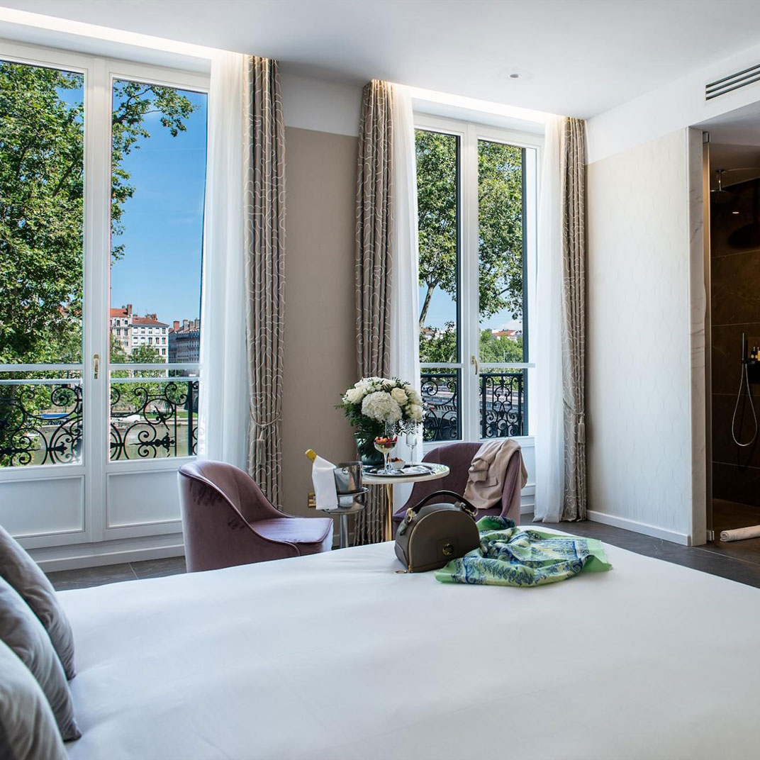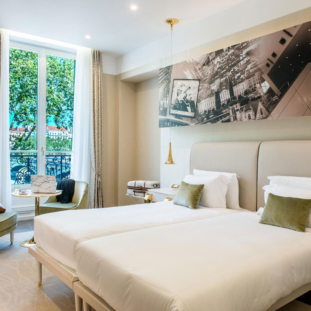 You know we’re fans of small-scale boutique hospitality, but we’re not closed-minded about it — there’s a time and a place for a proper, full-scale luxury hotel. One of those places happens to be Lyon, specifically the Presqu’île, the narrow peninsula between the the Rhône and the Saône rivers, in the heart of one of France’s biggest cities. Here you’ll find the luxury hotel you’re looking for, with just a hint of a surprise: for within this heritage building, which is classically, unmistakably French, Boscolo Lyon’s interiors come with a subtle Italian accent.