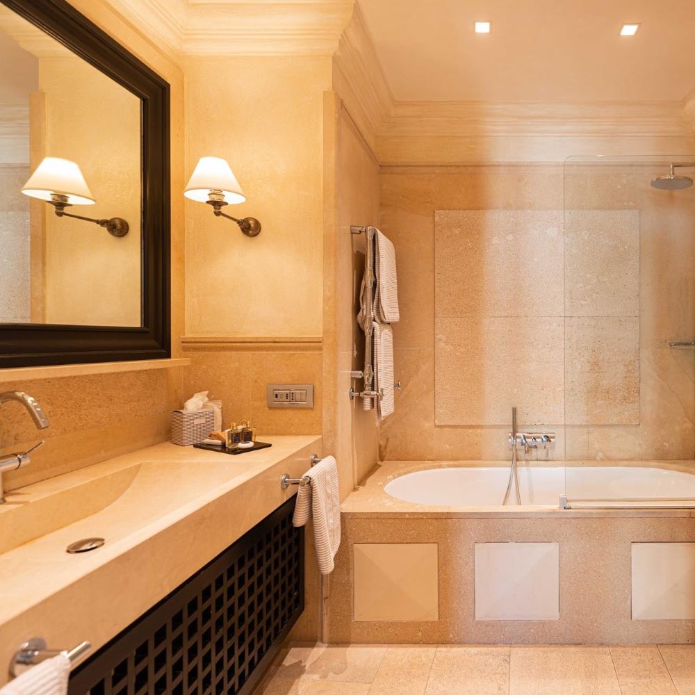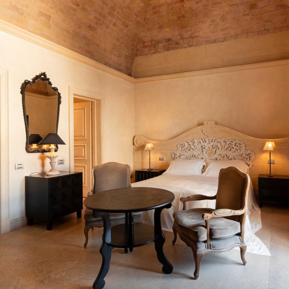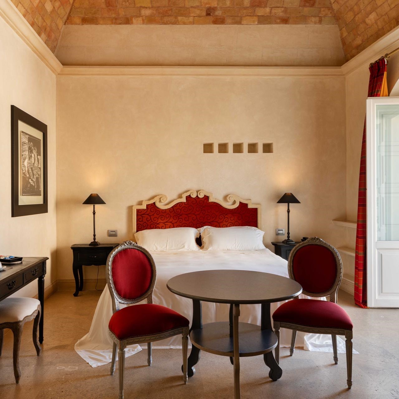 The suites are particularly dramatic, with vaulted ceilings and bathtubs reminiscent of Roman fountains; one of them even boasts a large private terrace with a pool.