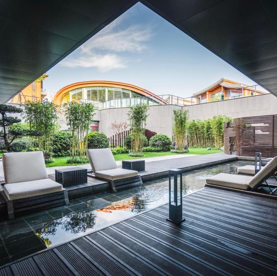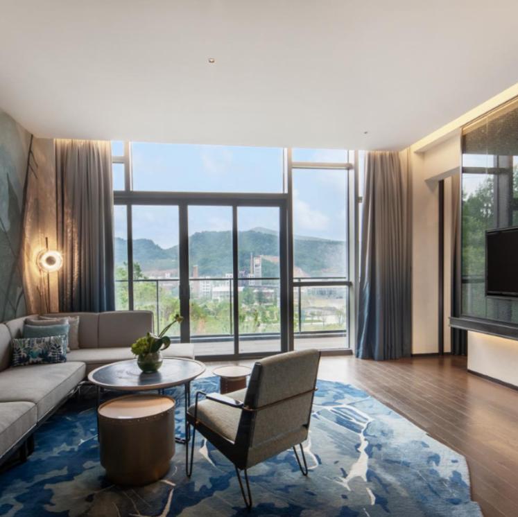 Hotel Indigo Nanjing Garden Expo spreads across Tangshan Garden Expo in villa formations that follow the terrain rather than imposing on it, working around excavated ore rock walls and waterways that wind between courtyards. The guestrooms split across different villas incorporating mineral elements: stone textures, metallic accents, with windows that open to birdsong and valley views. MAI restaurant takes its name from the Chinese word for pulse and resembles geologists' tents once stationed at mine bases. The terrace faces Regeneration Garden valley, best experienced at sunrise when light hits the surrounding peaks first.