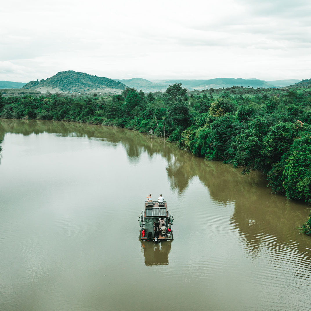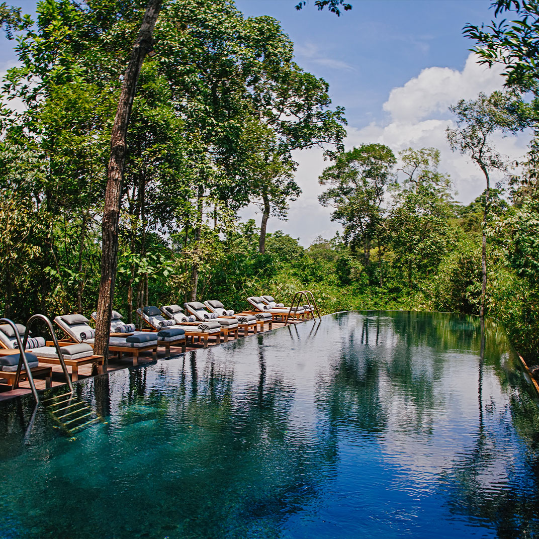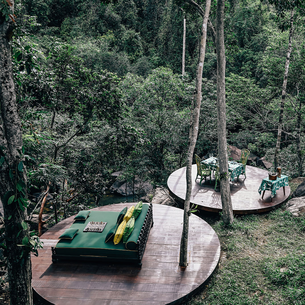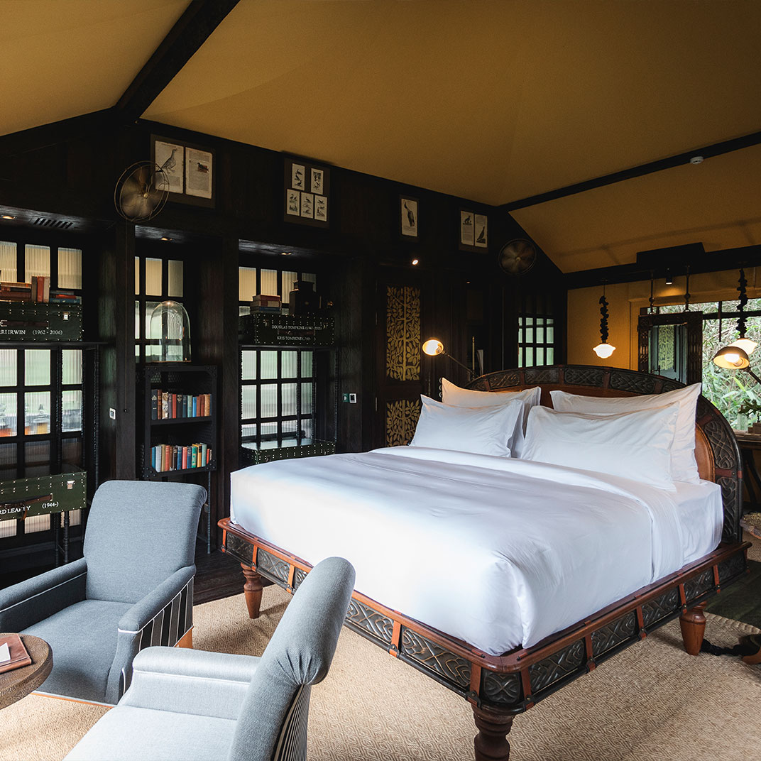 Like Shinta Mani Angkor, Shinta Mani Wild was conceived and designed by Bill Bensley, the California-born, Bangkok-based architect whose work set the tone for a generation of Southeast Asian luxury resorts. Here he’s in a particularly expressive mode, which means these tented suites are full of details that evoke various chapters in Cambodia’s history, with a particular focus on the glamorous 1960s.