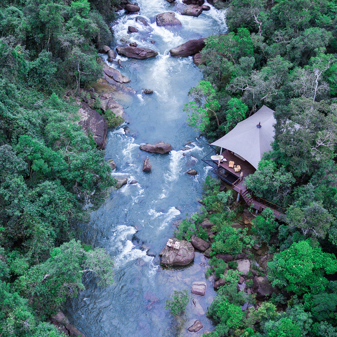 The country counterpart to its sister hotel in Siem Reap, Shinta Mani Wild offers more than just a change of scenery. In order to preserve the indigenous forest, its 15 tented suites and all of its public spaces are built on elevated platforms. Some more elevated than others — as of this writing, Shinta Mani Wild is the only hotel we know of where guests have the option to arrive via zipline.