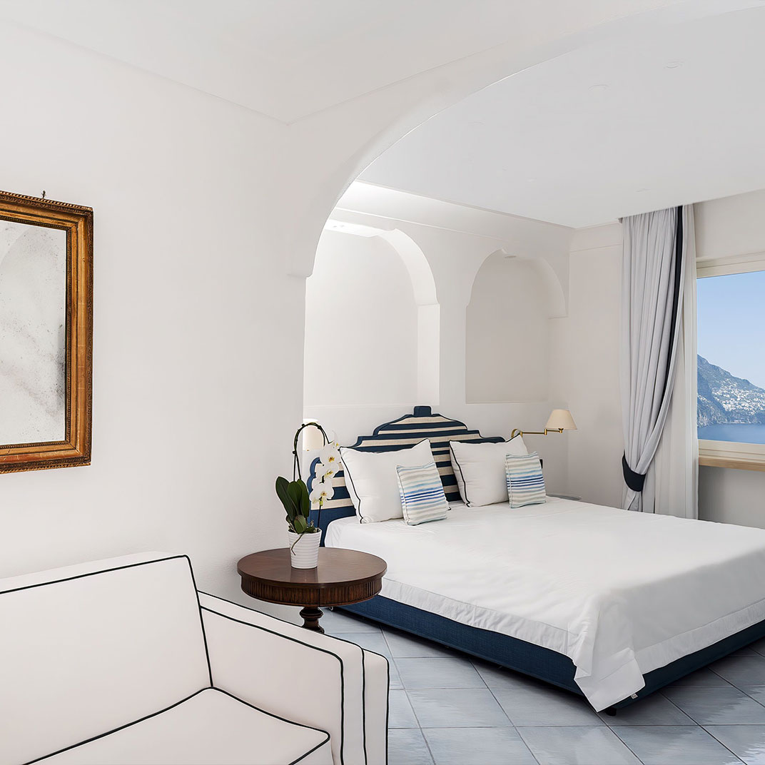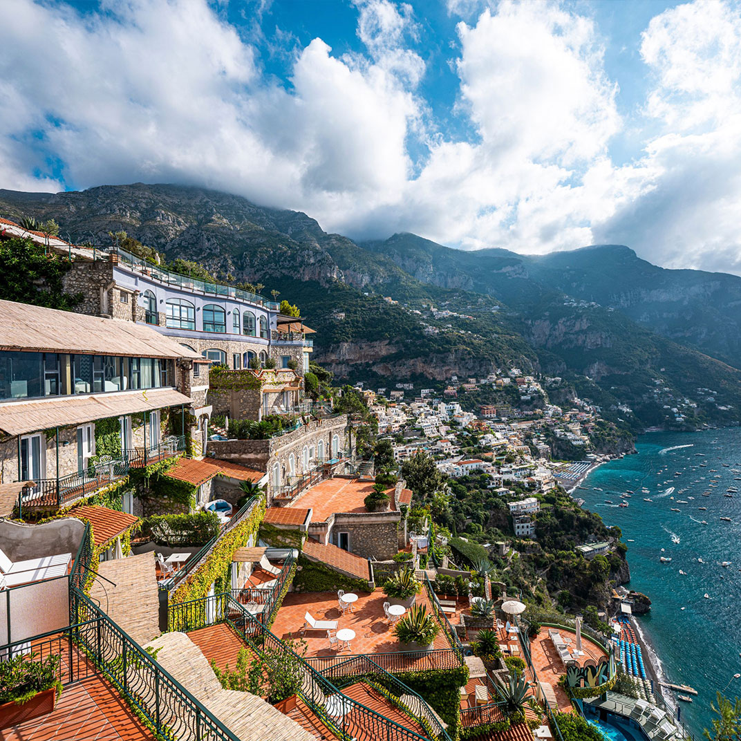 Positano is a place that needs little introduction; Hotel Le Agavi, like much else in this vertiginous Amalfi Coast town, clings to the cliffside above the bay, its outdoor spaces occupying a cascade of terraces at a dizzying multitude of levels. The view’s the thing, of course, and every room and suite in the house has one, and from a furnished balcony at that.