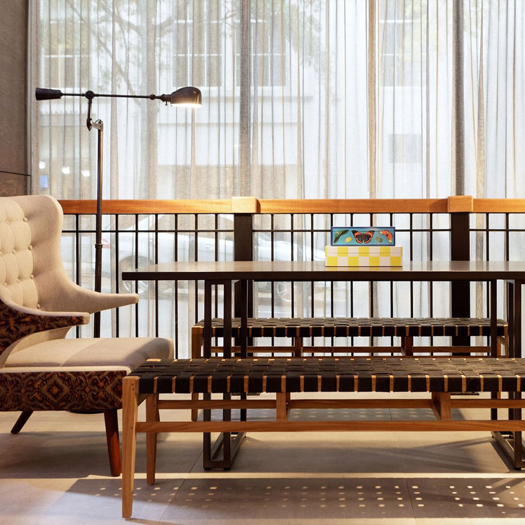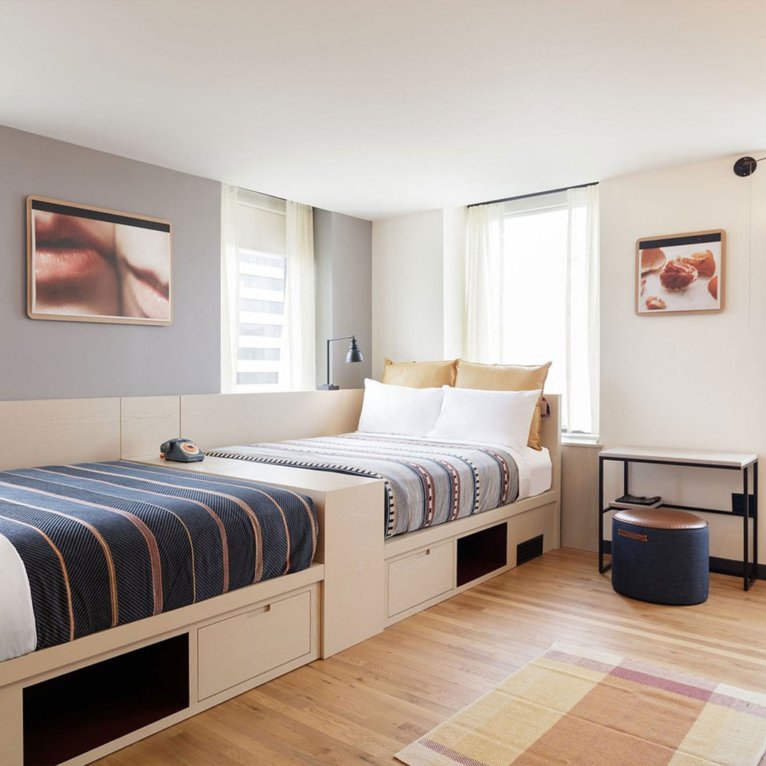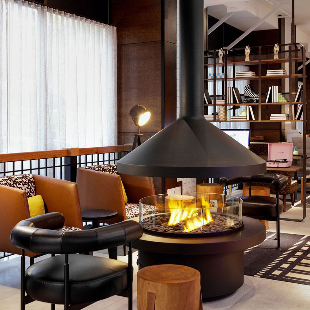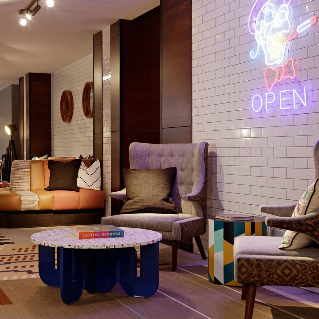 Moxy Richmond Downtown adds a lively counterpoint to the city’s more traditional stays. Check-in happens at Bar Moxy, where the first order of business is a cocktail (or mocktail!), and the lobby doubles as a lounge with retro games, music, and plenty of room to socialize. Guest rooms are compact but cleverly designed, with space-saving features and walk-in showers. A grab-and-go station keeps snacks and local drinks on hand around the clock, while evenings center on Bar Moxy’s mix of music, small plates, and late-night energy.