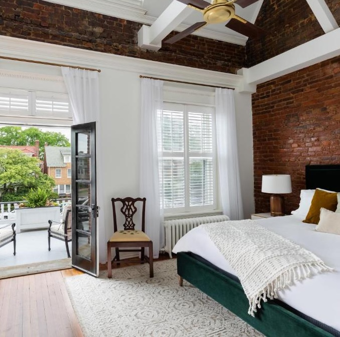 The Boulevard Inn occupies a 1914 Colonial Revival townhouse in Richmond’s Fan District, placing guests within easy reach of the neighborhood’s restaurants, galleries, and leafy avenues. Inside, the inn’s handful of rooms balance period character: high ceilings, detailed woodwork, and antique touches, with a straightforward, modern comfort. Owners Mitch and Roni bring hospitality backgrounds from New York and Puerto Rico, and their presence shapes the experience: a personal welcome, a daily European-style breakfast, and an atmosphere that feels genuinely connected to the house’s history.