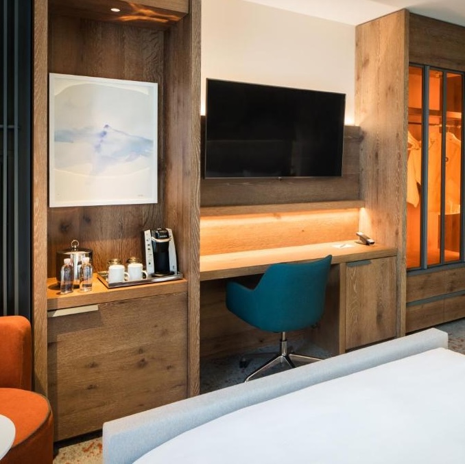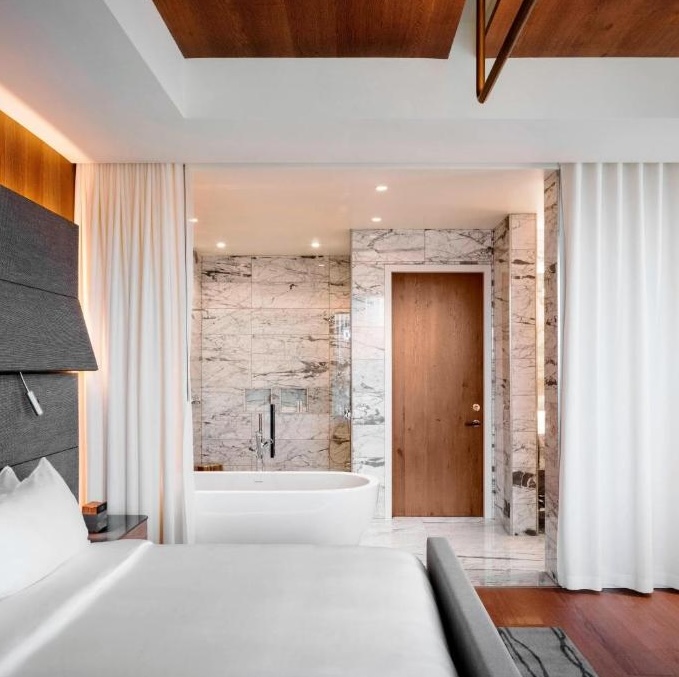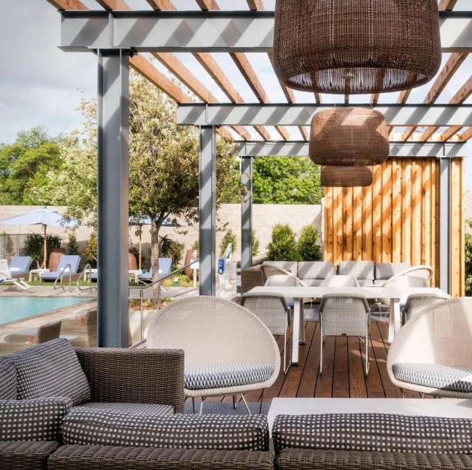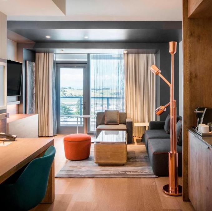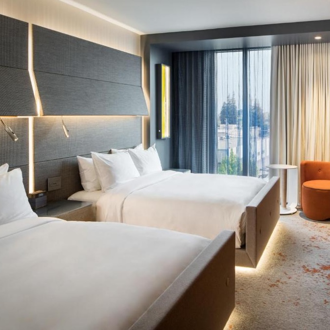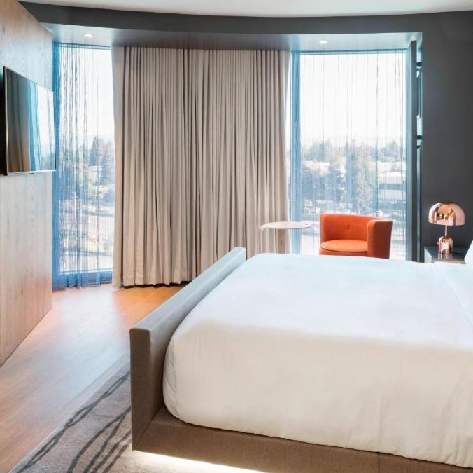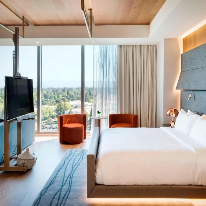 Hotel Nia sits in Menlo Park Gateway, a functional base for Silicon Valley business travelers who prefer structure over flash. Rooms prioritize tech-friendly practicality: smart controls, ergonomic workspaces, rain showers built for decompression after long meetings. Porta Blu serves coastal European and Mediterranean cooking in a dining room softened by greenery, while the lobby café pours Verve, a local Santa Cruz roaster. An outdoor pool and garden courtyard offer quieter moments between conference calls. It is hospitality calibrated for the Peninsula's working rhythm, where efficiency and comfort matter more than spectacle.