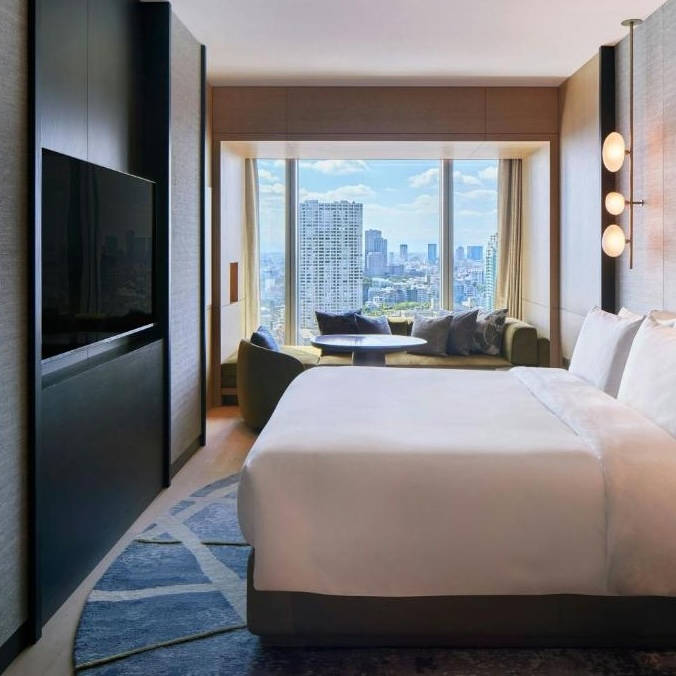 The first JW Marriott in Tokyo occupies the upper floors of a new tower in Takanawa Gateway City, a district built on the site of Japan’s first railway. Designed by Yabu Pushelberg, interiors take cues from Zen gardens and traditional landscapes, with 200 rooms positioned high above the city. Nine are dedicated “Mindful Rooms,” created for guests seeking wellness programs and restorative routines. Dining ranges from omakase sushi to Mediterranean cooking, while a croissant bar enlivens the lobby lounge. It is a serene counterpoint to Tokyo’s restless pace, and is within easy reach of Haneda airport.