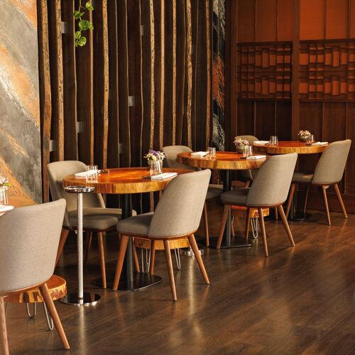 Already visible from the pavement outside this restaurant, the large kitchen where its staff can be observed busy at work is testament to its success. Inside, the dining room is modern and elegant, with careful lighting effects creating a muted ambience in the evening. The extensive menu features classic Chinese dishes – in addition to different types of delicious dim sum, Peking duck also takes pride of place among the main courses.