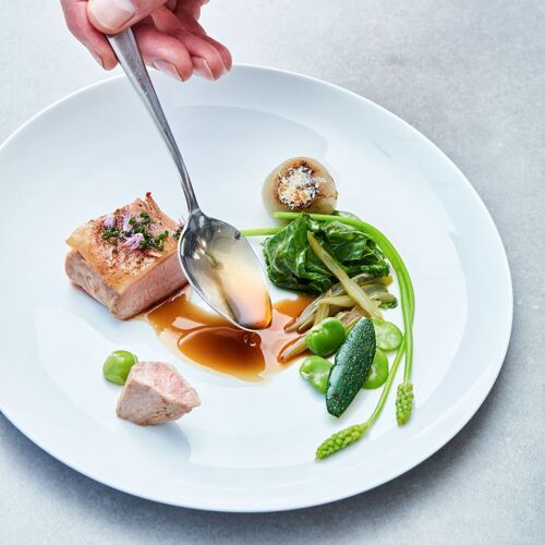 The name of this restaurant is inspired by the Spanish word bosque ("forest"). This warm and welcoming spot stands on the edge of the National Park, affording stunning views of the lush landscape – the terrace is a real highlight! Robin Koeken combines finest local produce from Texel with Mediterranean flair and Asian nuances. His penchant for umami and barbecue notes shines through in dishes such as succulent pan-seared turbot with briny shellfish from the Wadden Sea, sweet tomatoes and a beurre blanc made with fish fumet and a judicious splash of soy sauce. His cuisine packs a punch and, thanks to the smaller-sized portions, you can sample it extensively.