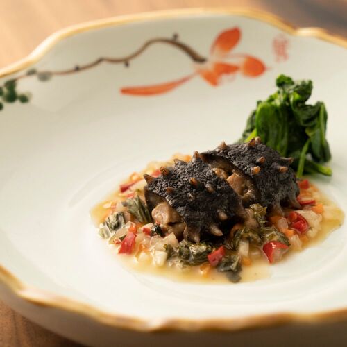 Weave Kansai food culture and Chinese tradition together and you get Kamigatachuka. Ingredients from the Kinki region are prepared using Chinese and Japanese techniques; continuing the theme, items are served on Chinese and Japanese plates and bowls. Vegetarian cuisine, dubbed ‘Naniwa’ (‘vegetable garden’), brings to mind the Kawachi Plain’s fame as a vegetable-producing region. The fare is the self-expression of a chef who was born in Osaka and grew up in a family that ran a Chinese restaurant.