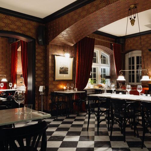 The Pałac Ciekocinko Hotel, a large house dating back to the 1920s, is home to this smart Belle Époque-style restaurant with a few plush details in its décor. Situated in the basement, there’s a pleasantly cosy feel to the dining room, which is accentuated by the cheery, welcoming service; a garden terrace is used to fine effect in the summer. The full-flavoured cooking incorporates French bistro and Italian influences such as confit duck leg and tarte Tatin.