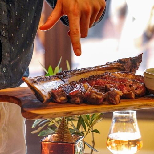 This offshoot of the star establishment doesn’t do things by halves: wood prevails in the contemporary interior and an imposing counter-cum-kitchen with a gleaming spit-roast oven and a shaded terrace. A bistronomic lineup strewn with South American notes.