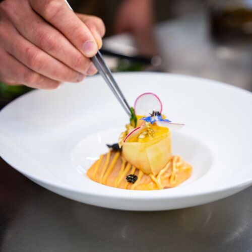 "It has always been our aim to connect agriculture and hospitality in the best possible way! We value sustainability in all aspects of our operations – rearing our own organic cattle is a major part of this, and sourcing freshwater fish from local breeders also fits perfectly into our concept. Furthermore, we place great emphasis on seasonal cooking and use regional ingredients from carefully selected suppliers who also work sustainably."