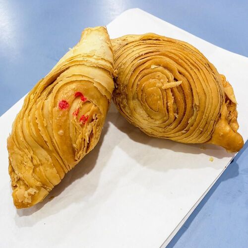 Glutinous rice mixed with salted duck egg yolk pork and chestnut wrapped with bamboo leaf.