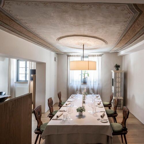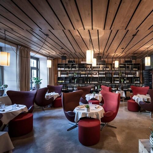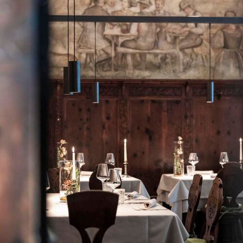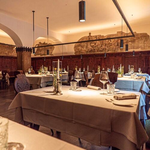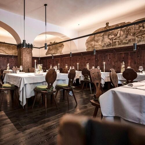 This building has been home to a restaurant since the 16C, making it one of the oldest in Bolzano. Today, it houses an elegant restaurant that serves a combination of traditional Alpine cuisine and classic Italian dishes with a contemporary twist, such as carbonara tortelloni filled with parmesan cream and crispy bacon. The attractive wine cellar boasts a selection of approximately 1 000 wines from the region and elsewhere in Italy, as well as a choice of labels from further afield.